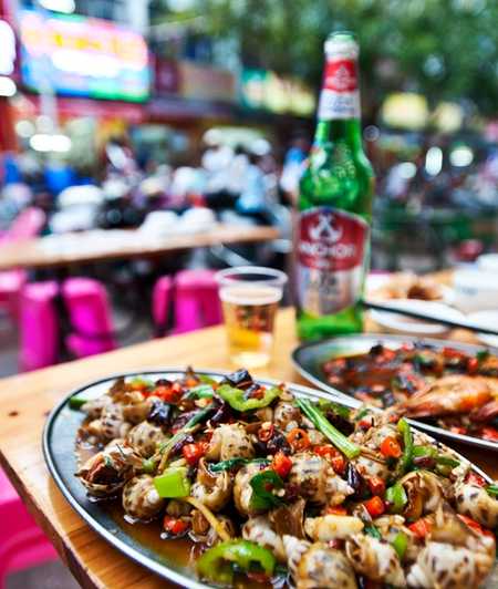 美食聚集地,有档口有门店,什么类型的餐型都有,相当于快餐食品街。
