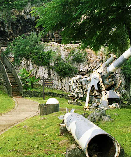 日军最后司令部遗址是位于塞班岛的景点。日军最后司令部的遗址位于塞班岛北端,有二战时遗留下的坦克、大炮等战争遗留物和自然石灰岩所形成的战争要塞。这里原来是原子弹的地下储藏库,在第二次世界大战的时候投放到