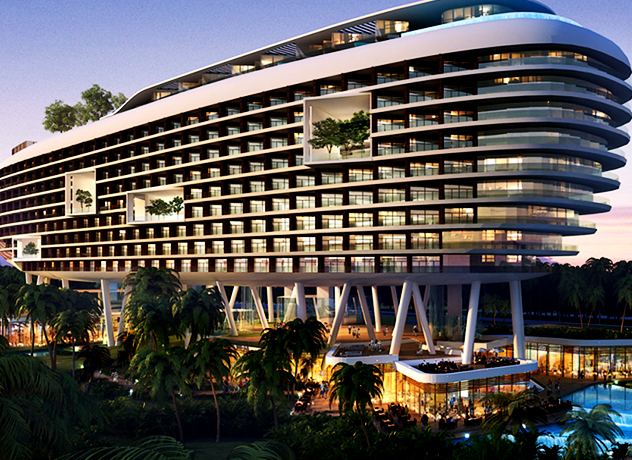 酒店位于海棠北路,雄踞海棠湾,距离国际免税城约数分钟车程。是一座融合酒店,餐饮,购物,水乐园以及水族馆为一体的综合性娱乐度假目的地。