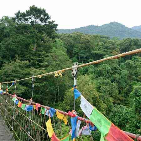 景区内的原始森林里有许多珍奇的动植物,像是恐龙时代的煞椤树和小天堂鸟等等,其他维管束植物、乔木、五指山兰花等更是随处可见。 集中了热带山地雨林和热带沟谷雨林的典型景观;山上古树参天,藤萝密布,奇花异草随处可见,有永远两株相接母子相连母生树,具有神奇医疗功效的野生茶树。
