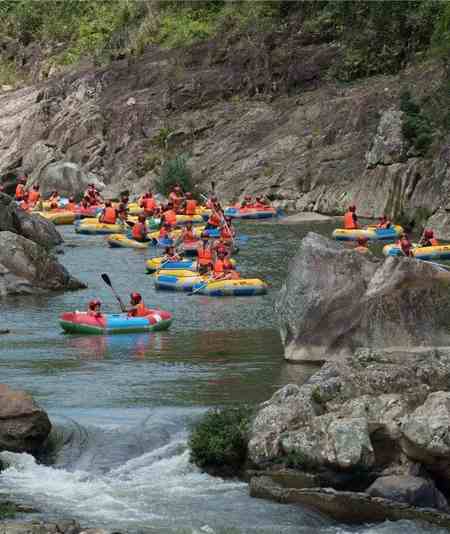 五指山原始森林中的山泉水汇聚而成的水满河清澈透底,动静结合。水流时而湍急时而平静,水光山色交相辉映,构成了美丽的风景线。