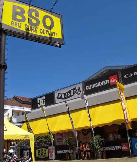 巴厘岛当地人将BSO冲浪用品店的英文名字称为Surf Outlet,BSO冲浪用品店位于Jl. By Pass Ngurah Rai, Kuta, Kabupaten Badung, Bali 803