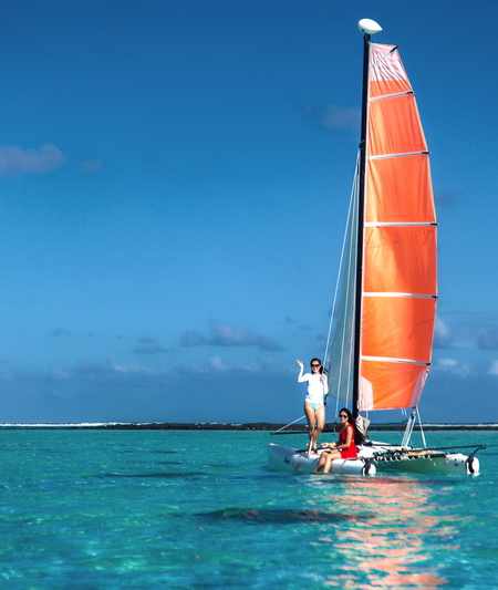 毛里求斯的水上运动项目很多,在鹿岛、蓝湾等都可以参加,包括摩托艇、独木舟、水上沙发、拖伞、海底漫步、乘坐双体船和游艇、追海豚等等,都是很受欢迎的项目。