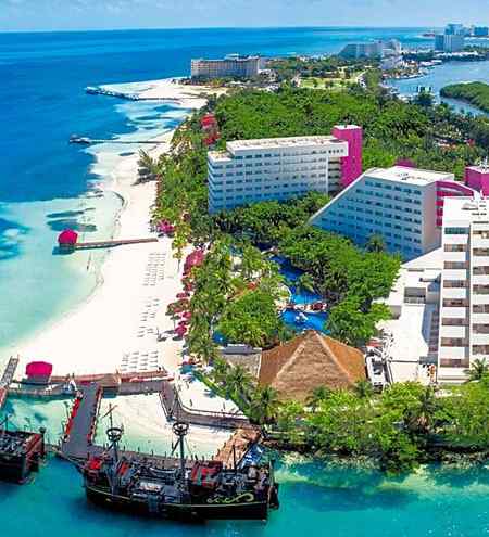 坎昆大绿洲棕榈全包酒店位于Boulevard Kukulcan Km 4.5 Zona Hotelera,坎昆,金塔纳罗奥州,77500,墨西哥,交通方面,可选择自己打车或包车前往,坎昆部分酒店在机场
