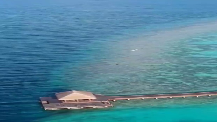 海洋居所伫立在木栈道尽头波光粼粼的海面上,与日出朝霞和落日余晖相映成色。内部空间宽敞,如隐匿于尘世最深处的悬浮天堂。