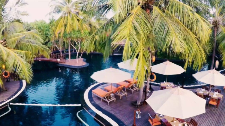 从有迷人茅草屋顶的沙滩别墅到带私人游泳池的水上别墅,应有尽有。装饰是低调的亚洲热带风格,用了大量黑木和藤木家具,色调明丽