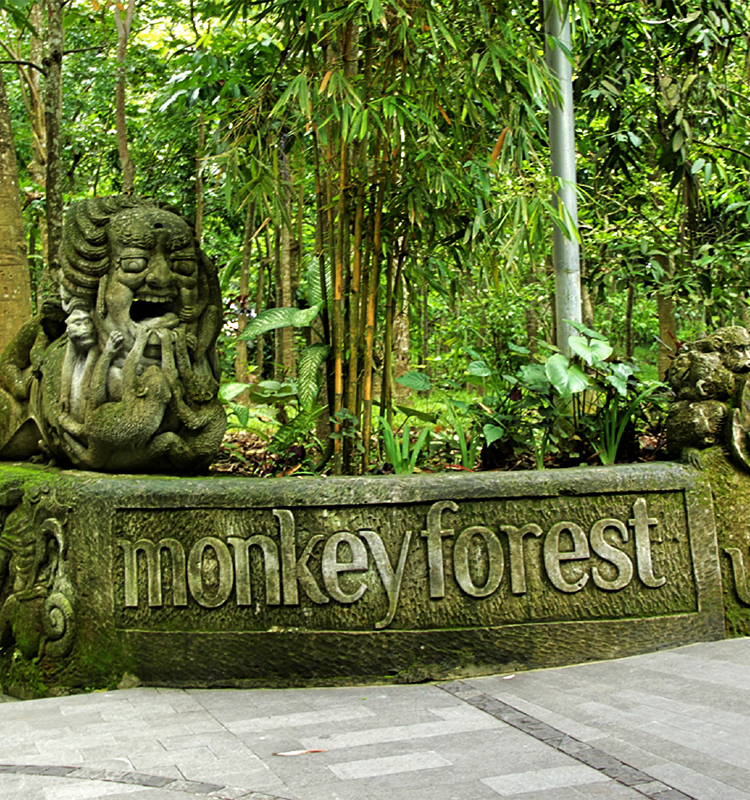 圣猴森林公园是一片豆蔻林,林中生活着当地特有的巴厘猕猴。巴厘岛居民认为猴子是神猴哈努曼的部下,也应该当作神灵敬奉。因此这里的猴子生活得无忧无虑,还有专人喂养。
