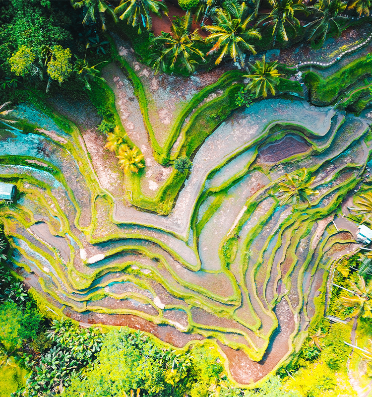 绿油油的梯田镶嵌在椰子树下,清新的空气弥漫着山野的味道,友善的农家人,逗趣的汪星人,体现着人与自然的和谐,周杰伦《稻香》的MV中美景,就取自巴厘岛德格拉朗梯田。