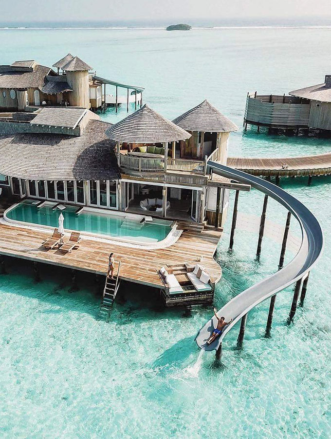 马尔代夫水上滑梯最先火爆的度假岛,可以直接从房间滑到大海,无数知名大V博主来这座岛只为体验一下水上滑梯。