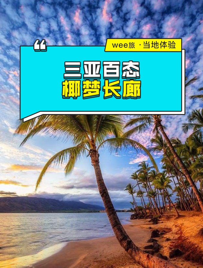 三亚湾的海岸线有22公里长,是三亚最长的海岸线。其间有一条被称为亚洲第一大道的“椰梦长廊”,大片的椰林和沙滩,放眼望去,东岛西岛两座小岛浮于海中。这里是老三亚的标志,是三亚湾中最美丽的海边风景线,现在成了许多旅拍的经典拍照点。每当晚霞初上,金黄色的落日会布满整个椰梦长廊的上空,此时就是这里一天当中最美的观赏拍摄时刻了。