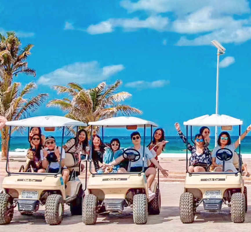 如果你带着老人或者孩子,或者你想要来一个悠闲的旅途的话,推荐大家坐着高尔夫车环岛一周,轻松领略加勒比海的风光。