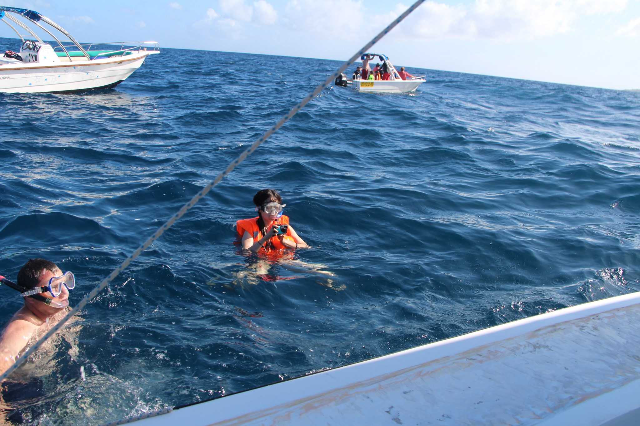 看海豚一定要乘坐快艇,在发现海豚的第一时间快艇转头或跟上,可以近距离的看到海豚。如果是晕船的朋友,可以选择乘坐双体船。