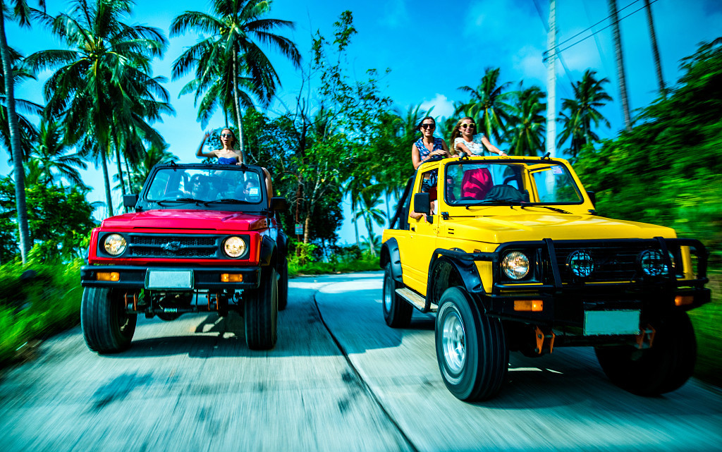 想全方位感受苏梅岛当地风情,4X4越野车丛林探险是必不可少的选择。不仅能让你体验越野的刺激与冒险,还能多方位看遍岛上的大大小小的景点。一部越野车可以做8-10个人,顶部天窗观光座位,一路哼着歌想去哪里去哪里,路途颠簸,一定要系安全带哦。