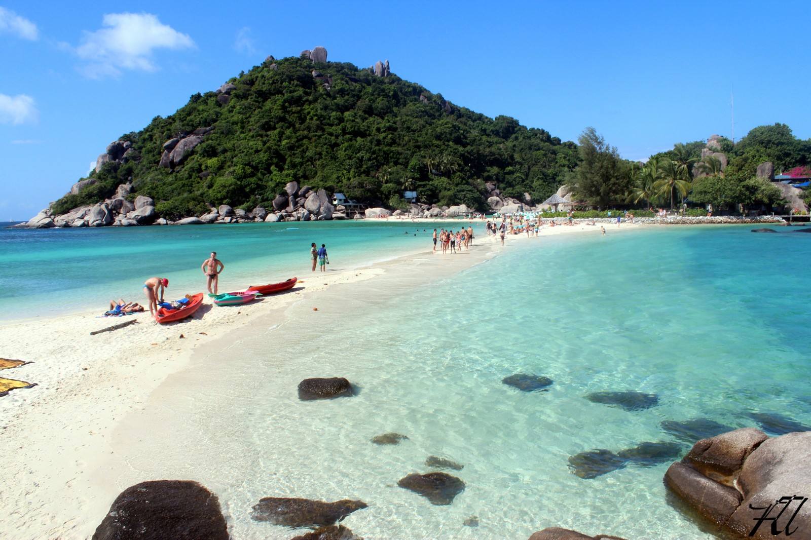如果不敢下水,那么就来泰国最美小岛之一的南园岛吧。著名的人形沙滩在离岸边很近,水很浅的地方就有成群的鱼、胖胖的海参等海洋生物。