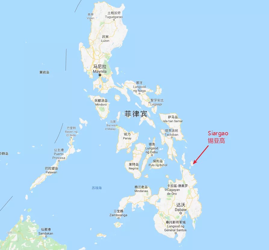 Siargao位于菲律宾地图的东南位置,距马尼拉800公里。隶属于棉兰老岛的苏里高省。面积437平方公里。东临整片太平洋,有绝佳的海浪,号称菲律宾冲浪之都。九月份举办锡亚高杯冲浪赛。这里还有棉兰老岛第二大的红树林(位于西岸的Del Carmen),在东侧海岸则有一些白沙滩,并有较多浪点。