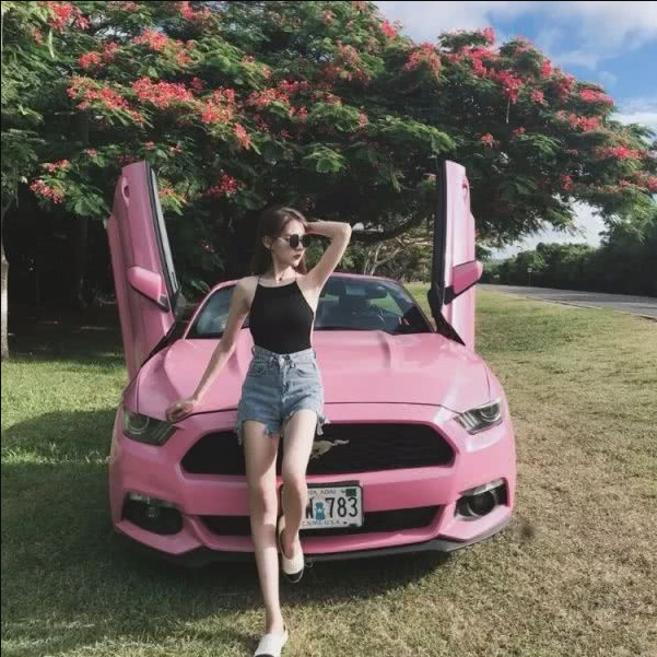 和粉红野马的合照推荐大家可以穿牛仔短裤+黑色背心,剪刀门一开,必须凸显一下大长腿,背心还可以选择露背的款式更加性感。