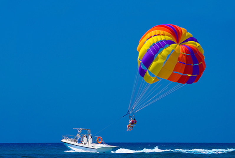在蓝梦岛参加水上项目,需要先坐船去一个海上平台,水上平台有跳水、滑梯,香蕉船,飞鱼,水上摩托,拖曳伞,玻璃船、海底漫步等项目。如果想要玩点刺激的,就去坐香蕉船吧,通过汽艇的牵引,坐在香蕉船上你可以感受到海风和气浪的刺激。