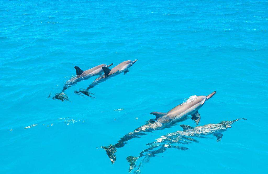 9:30-10:00是最佳追海豚的时间,因为到中午的话,太阳光强烈,海豚就不会浮出水面玩耍了。