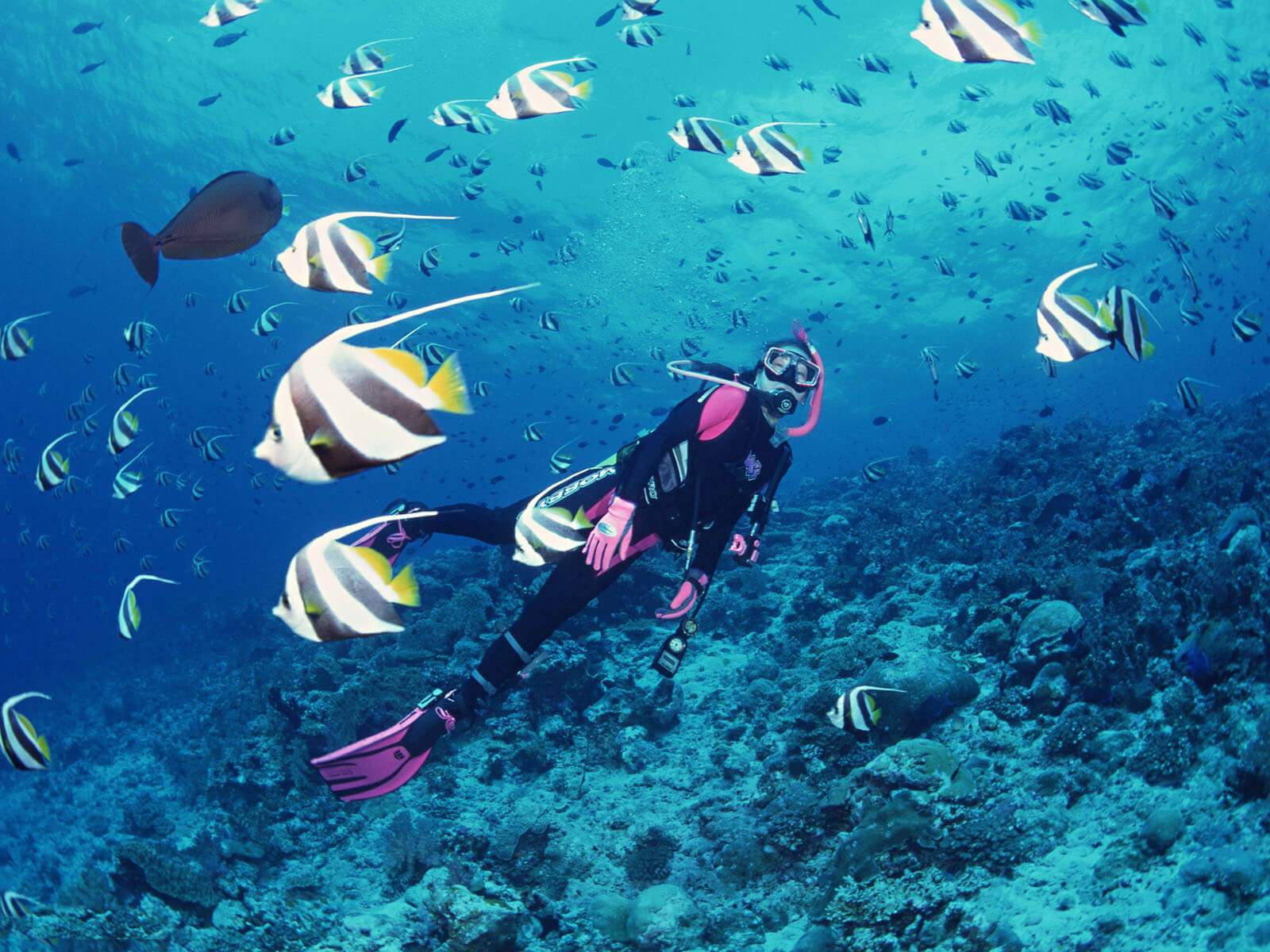 蝠鲼湾可以看魔鬼鱼,水晶湾看翻车鱼。魔鬼鱼是一种大型海洋生物,性格温顺,经常有深潜客和巨大的魔鬼鱼一起同游。呆萌的翻车鱼也很有趣,它们来到蓝梦岛是要借助附近海域的鸟类和鱼类清除身上的寄生虫,这也是观赏翻车鱼的好时机。