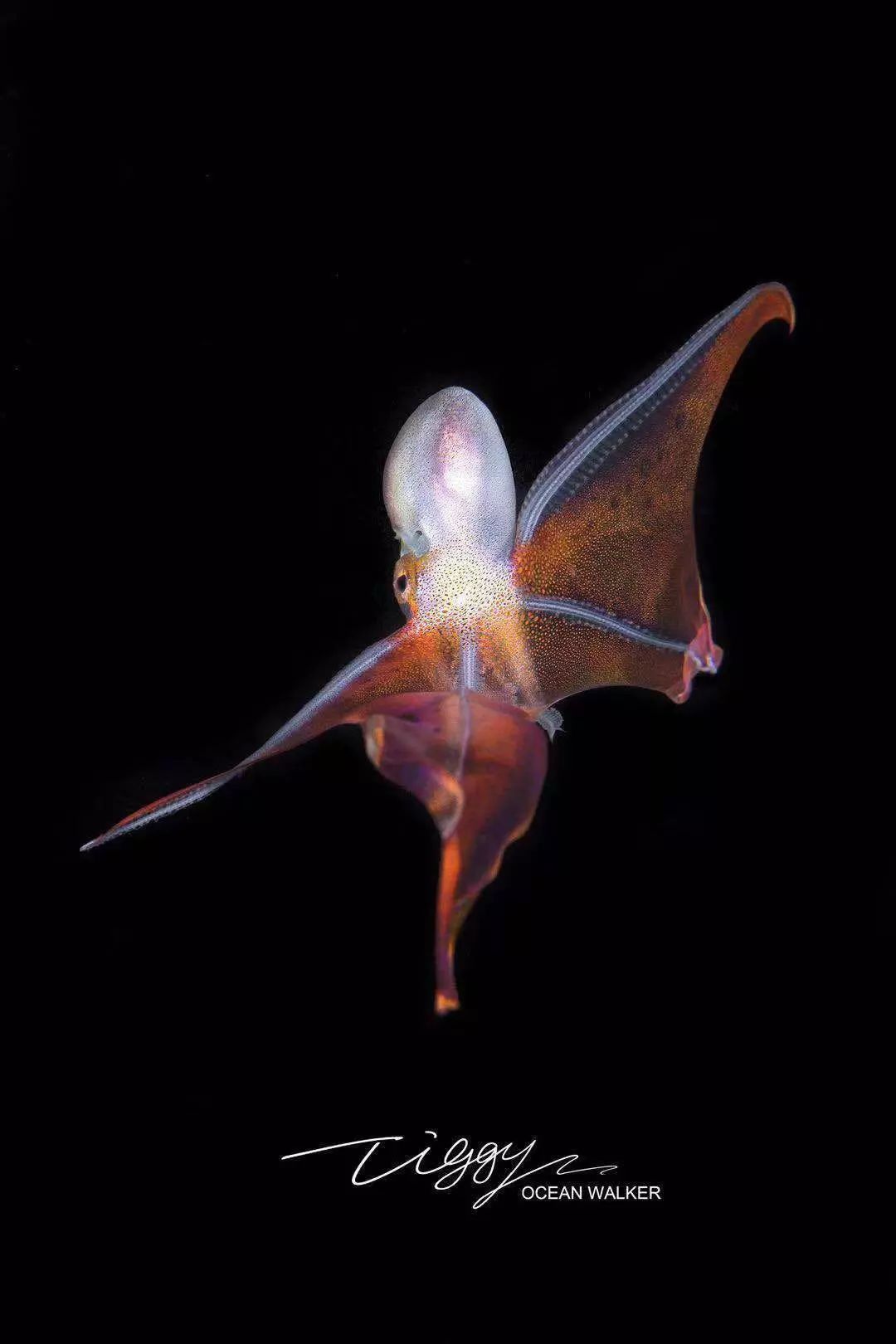 毛毯章鱼即印太水孔蛸(Tremoctopus violaceus)。过去对于雄性毛毯章鱼活体的观察比较少,因为它体型很小,体长仅两厘米左右,而且终其一生都在外海漂浮,不通过潜黑水的方式是很难观察到的。