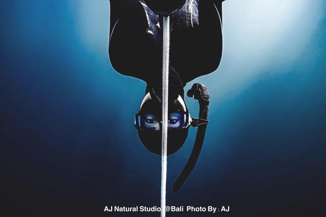 去年12月巴厘岛3星课程中AJ陪着学员在15米hang着👆