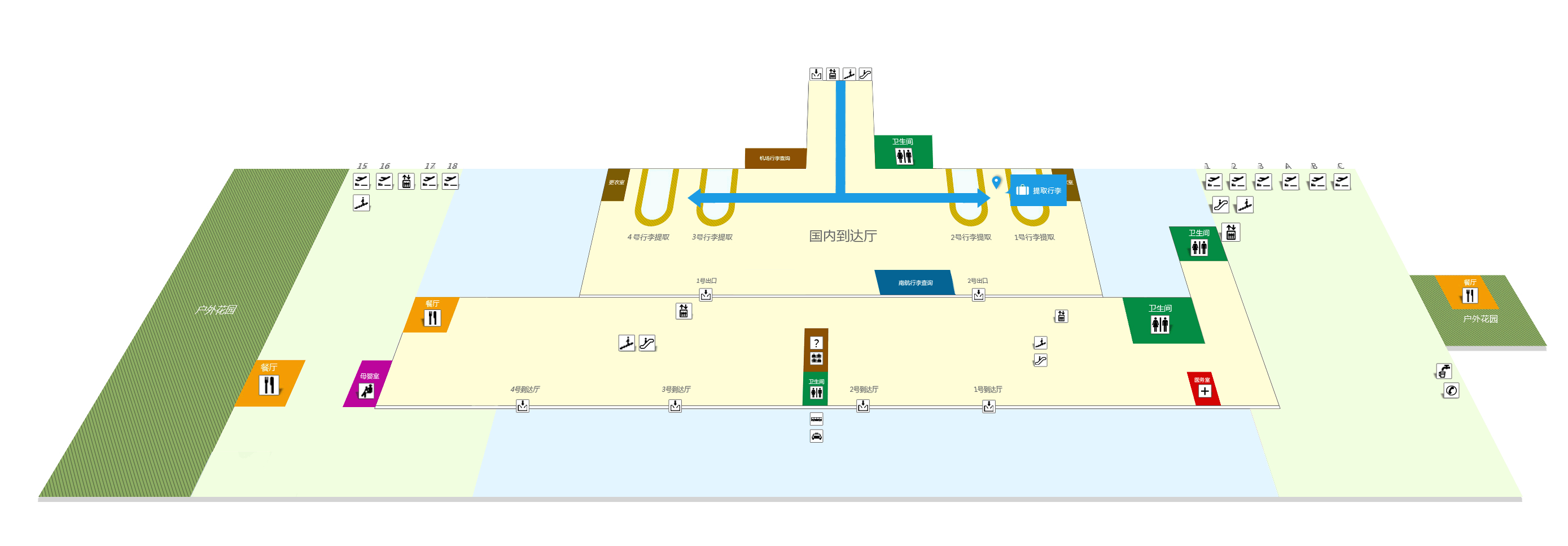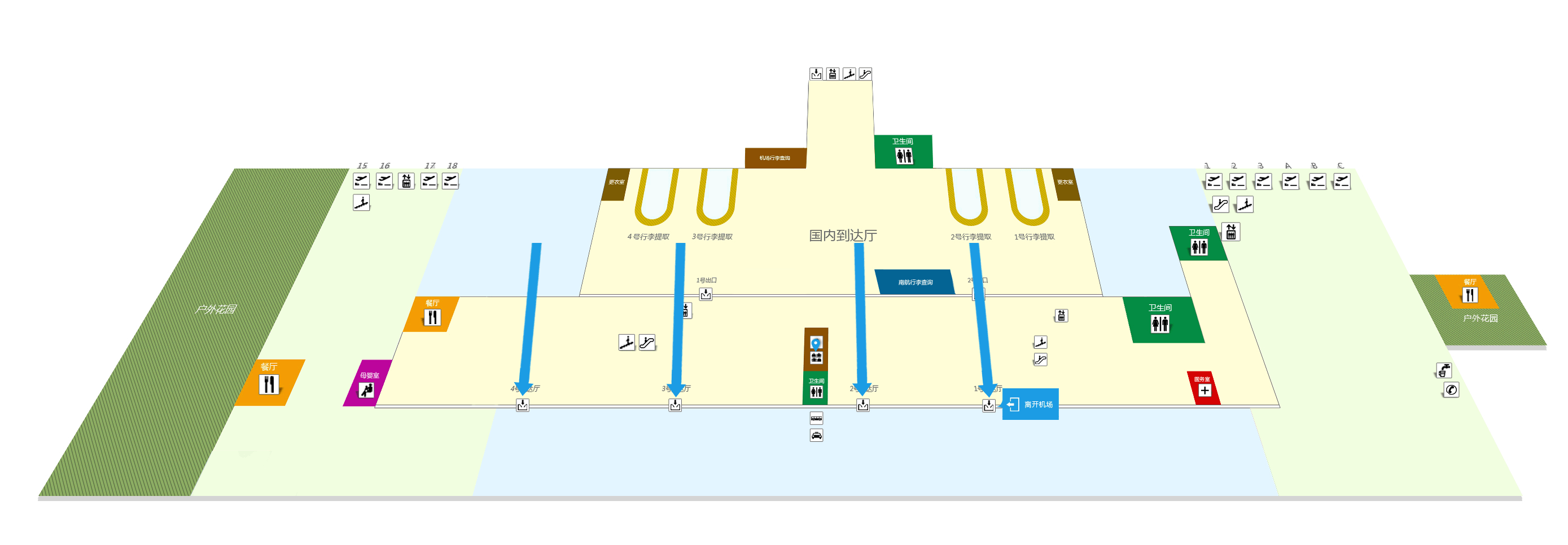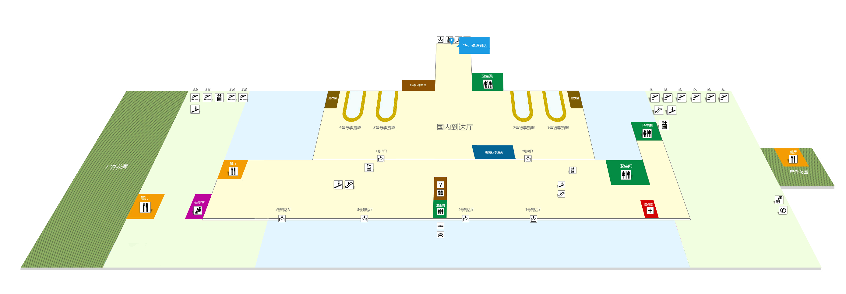 凤凰机场吸烟区共有5个,其中国内候机楼4个,分别位于法式花园、航站楼一楼东侧自动隔离门外、国内出发一层及二层户外;国际候机楼1个,位于国际候机楼中心花园。