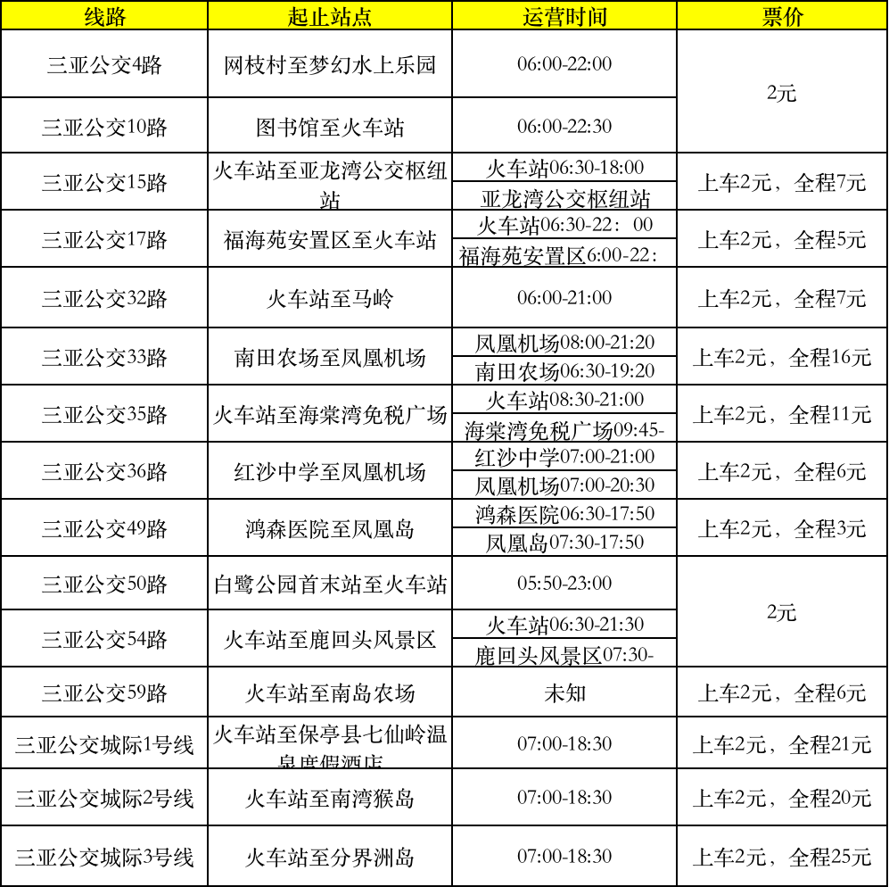 三亚站附近公交线路很多,火车站一出来就能看到各路公交车,有公交牌,非常方便,不用担心找不到。开往各个地方的都有,几乎是人满发车,目前途经三亚站的公交线路共有15条: