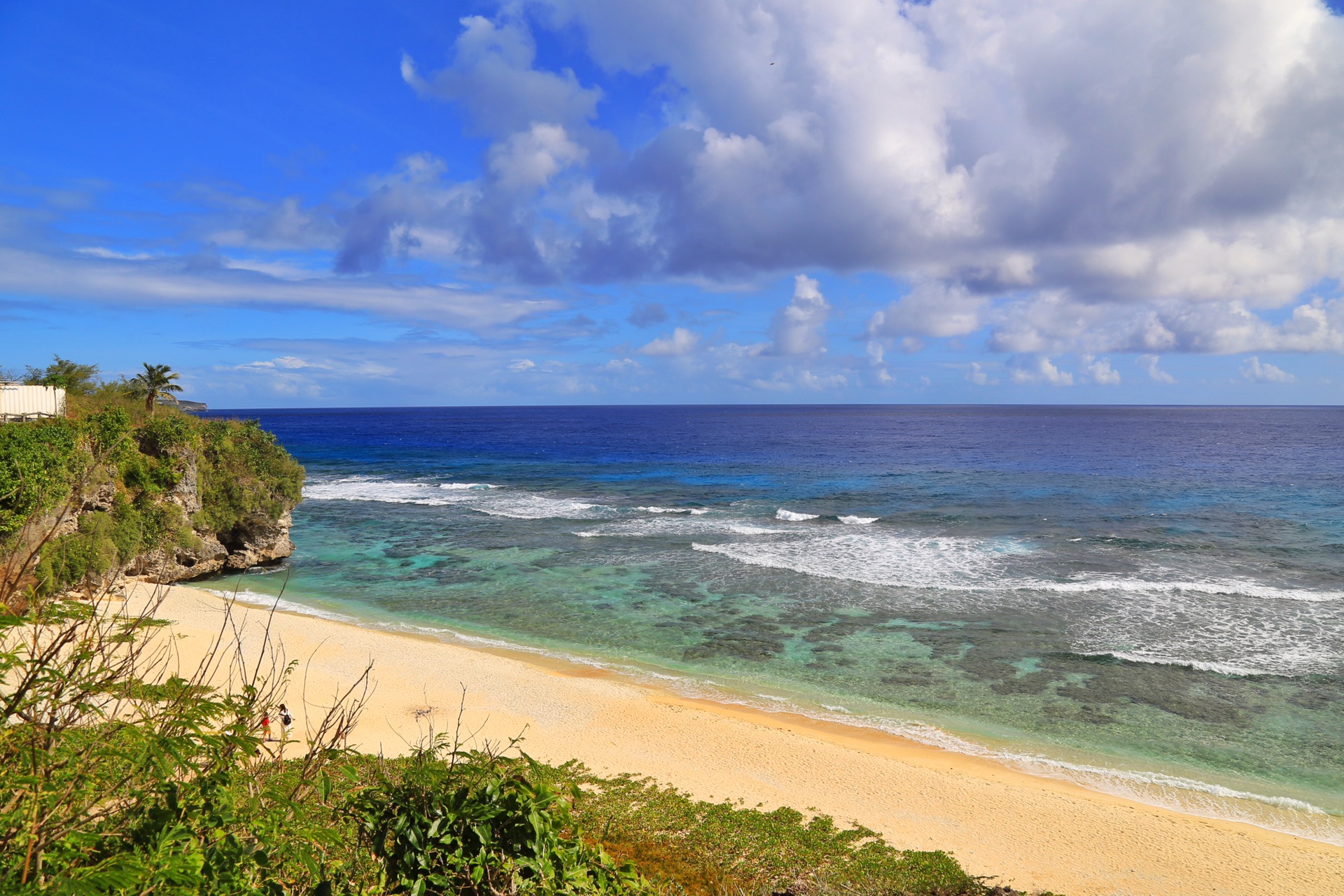 欧碧燕(Obyan Beach)位于塞班岛的南侧,是水深约十五公尺的岸潜潜点,由礁盘与白色沙地交错成的缓坡地形,能见度佳,如水晶宫般透明。除了礁盘上的珊瑚礁鱼类外,在沙地上还可见到一群群的园鳗。
