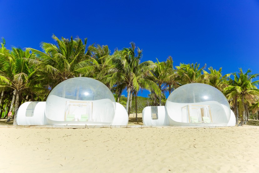 呆呆岛,新晋网红打卡地,一个人少景美的小众岛屿。这个岛位于陵水,有两种方式到达:自驾的比较方便,直接导航呆呆岛,车可以开到景点的游客中心;另一种方式从南湾猴岛码头坐船,想南湾猴岛和呆呆岛一起玩,那就比较合适。这里有小巴厘岛网红风的感觉,粉色蓝色海滩巴士、海滩秋千、一拍就火的泡泡屋、白色老爷车、复古风帆船、沙滩教堂等等,还有碧海蓝天陪着柔软的沙滩椰林,吸引了无数网红和情侣们来此打卡。