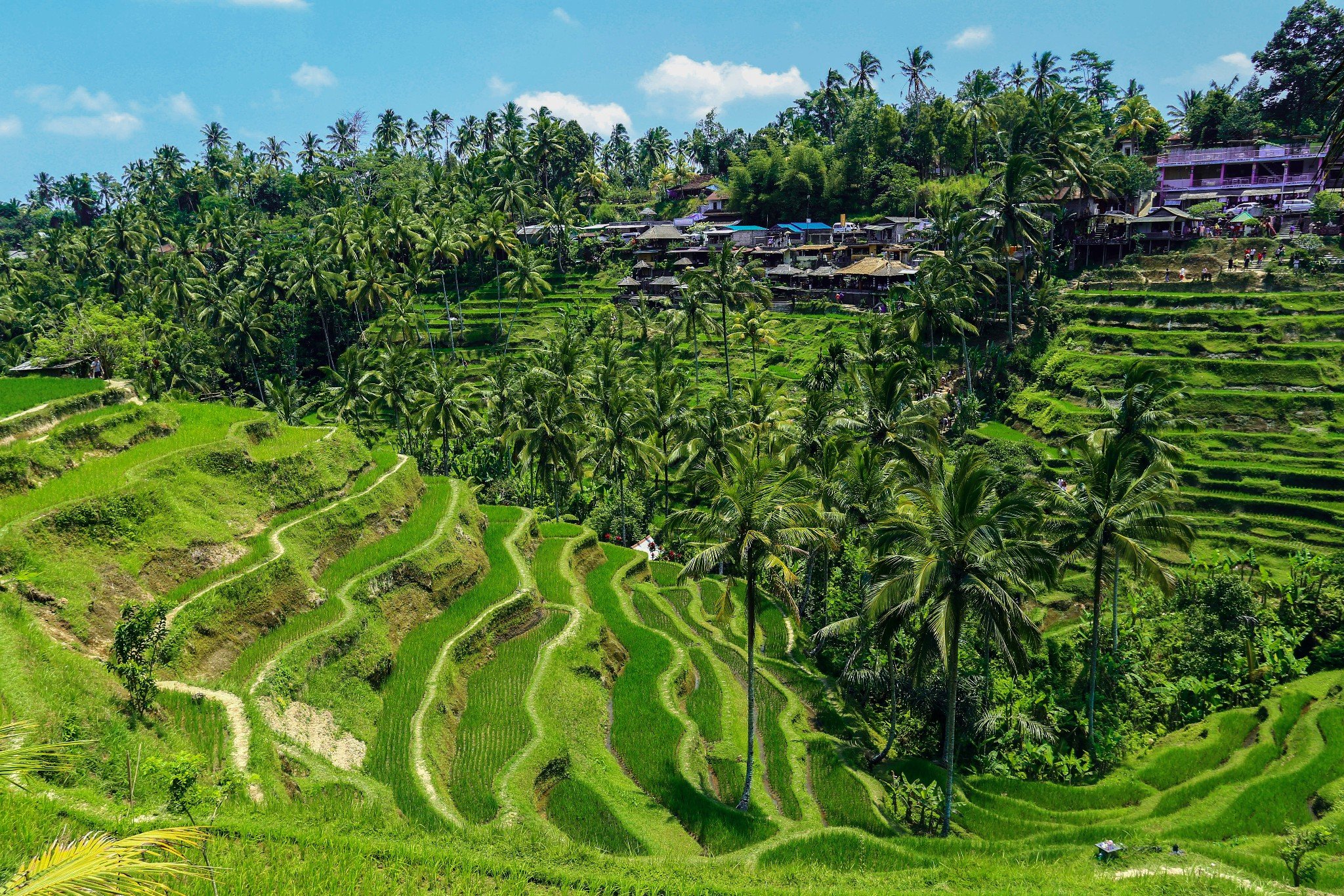 巴厘岛一共有三个梯田比较出名,最有名的是面积第二大的“德格拉郎梯田”(Tegallalang Rice Terraces)。可以说现在在网站上搜出来的巴厘岛宣传照都会有这个梯田做背景,是一个很能代表巴厘岛特色的景点。